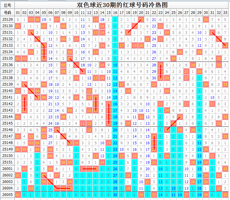 双色球26006期冷热号码及出号趋势分析(具体号码可参见上图或会员文章的觅宝图):