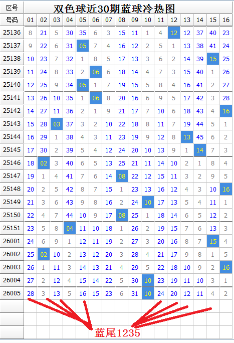 蓝球本期有热蓝6枚,冷蓝10枚,蓝球冷码数量稍多。上期开出热蓝,这是连续4期开出,由于近期蓝球冷热交替开出规律不明显,本期蓝球热码冷热难定。