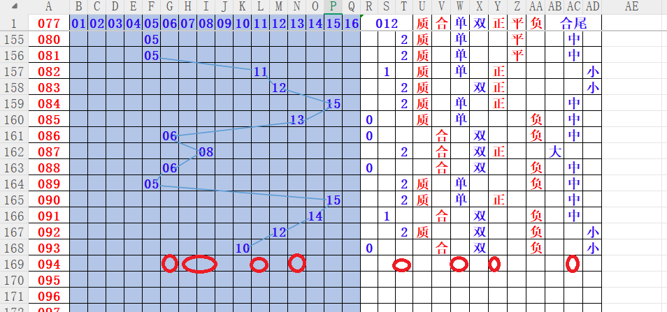 如上图4,质合分析,质数连续两期,本期重点合   06 07 08 11 13关注 。