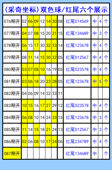 双色球第087期图文(采奇坐标),红尾六个展示