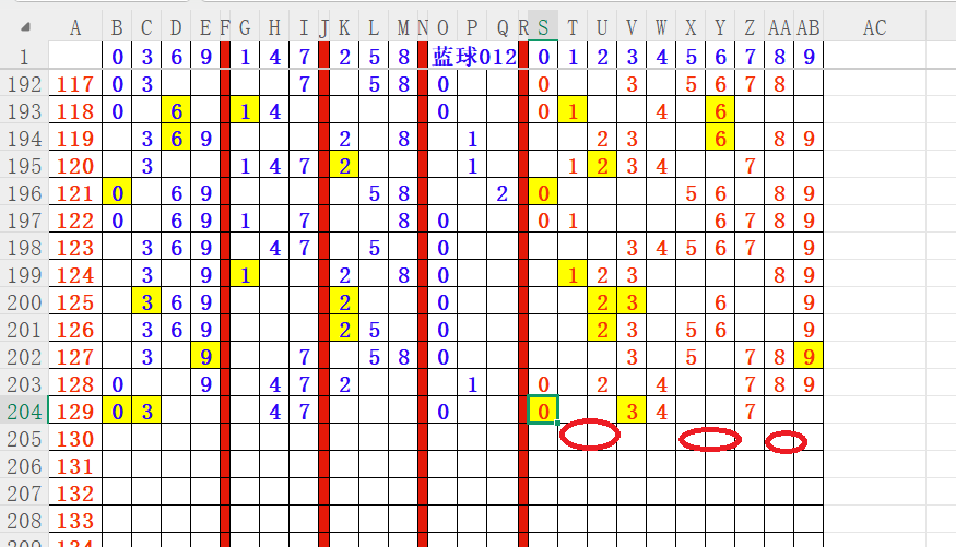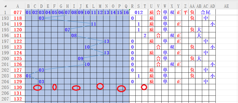 如上图4,012路分析012路,本期重点10路。重点    02 05 08 12 15
