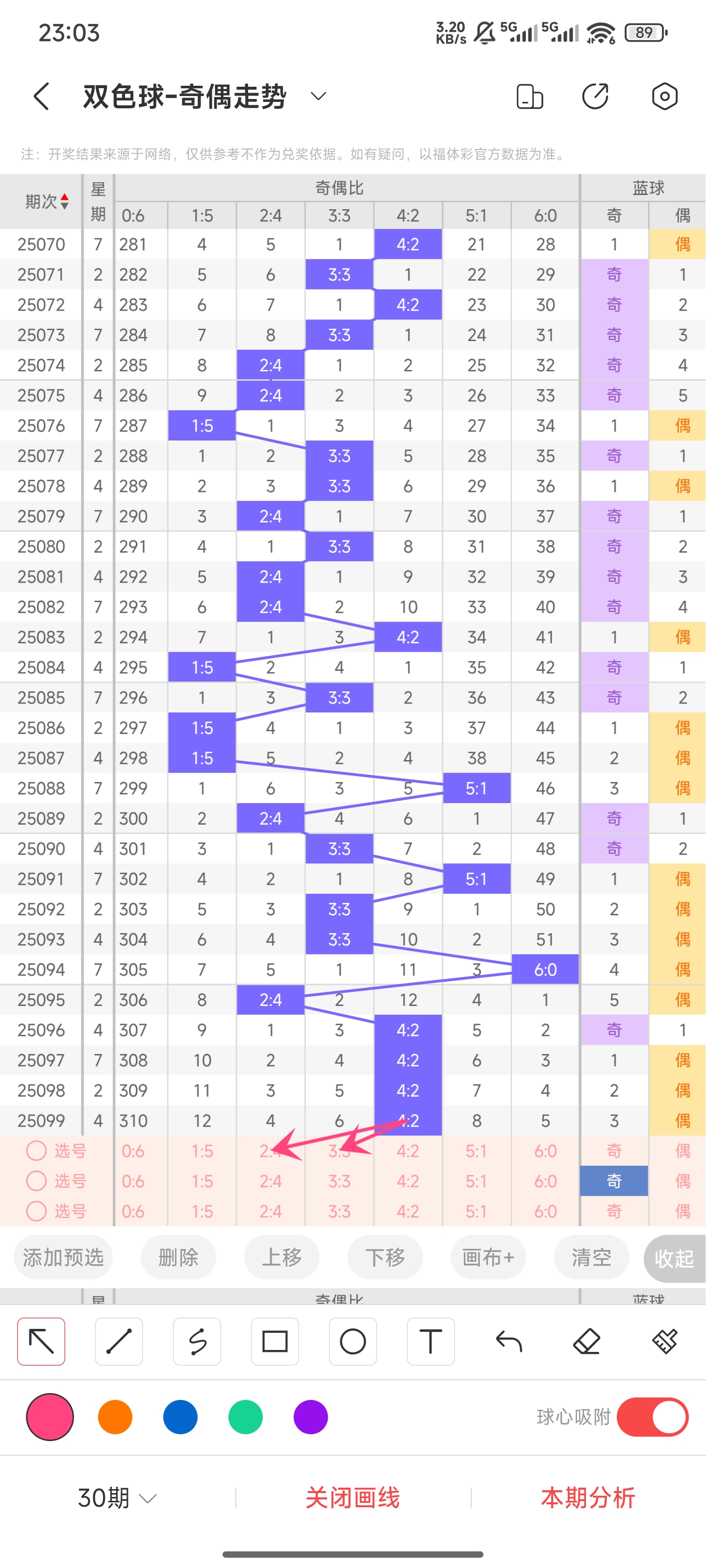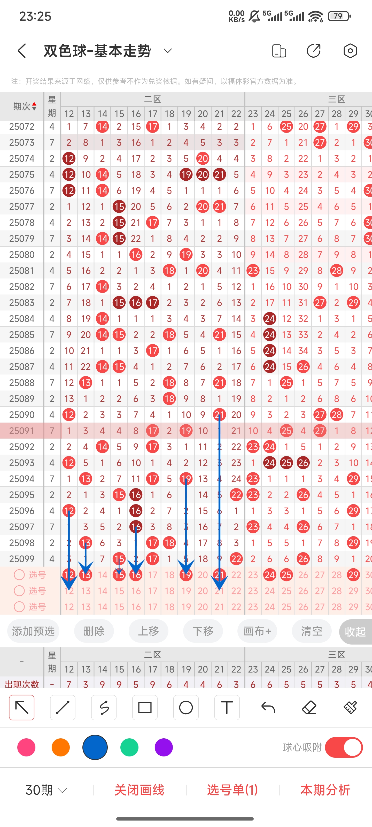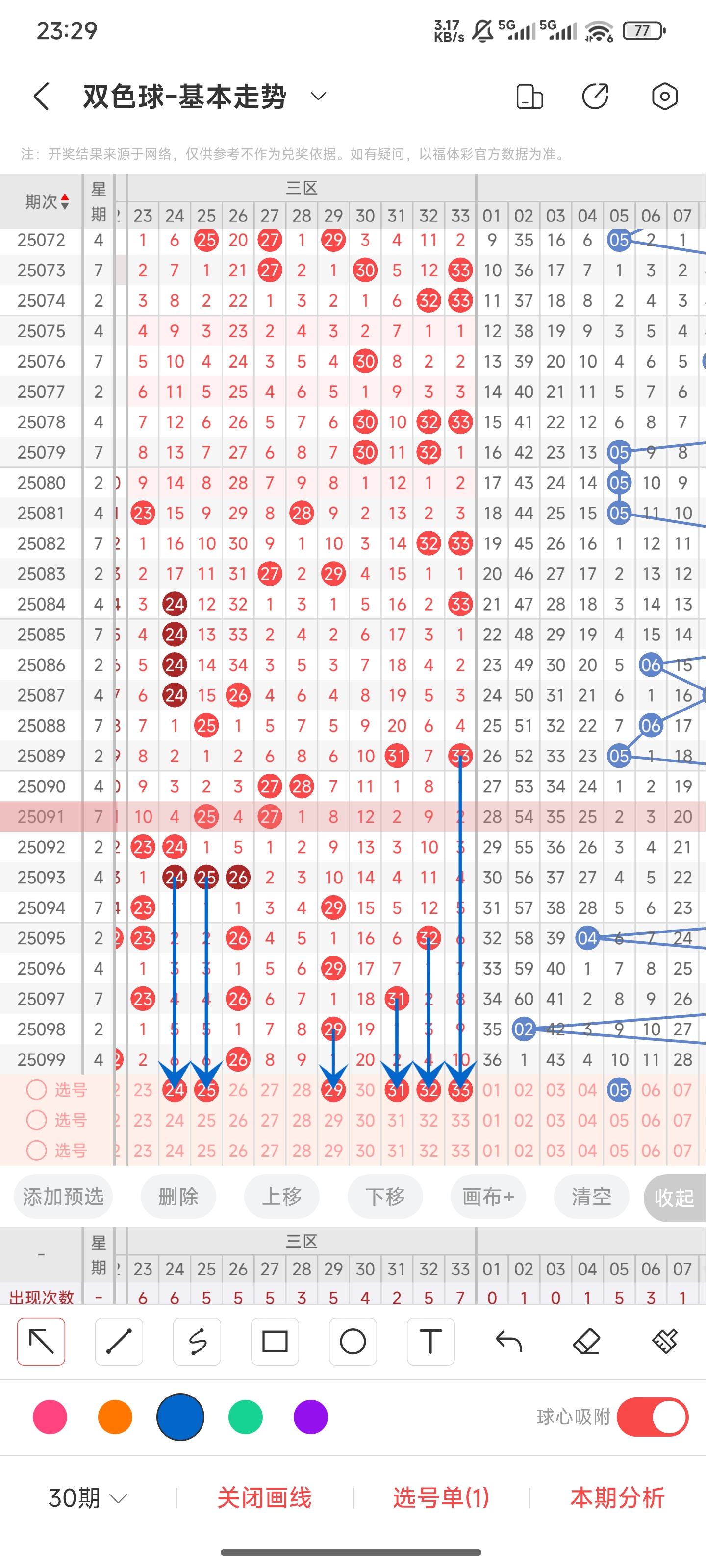 双色球25100期分析,上期命中6个红球。