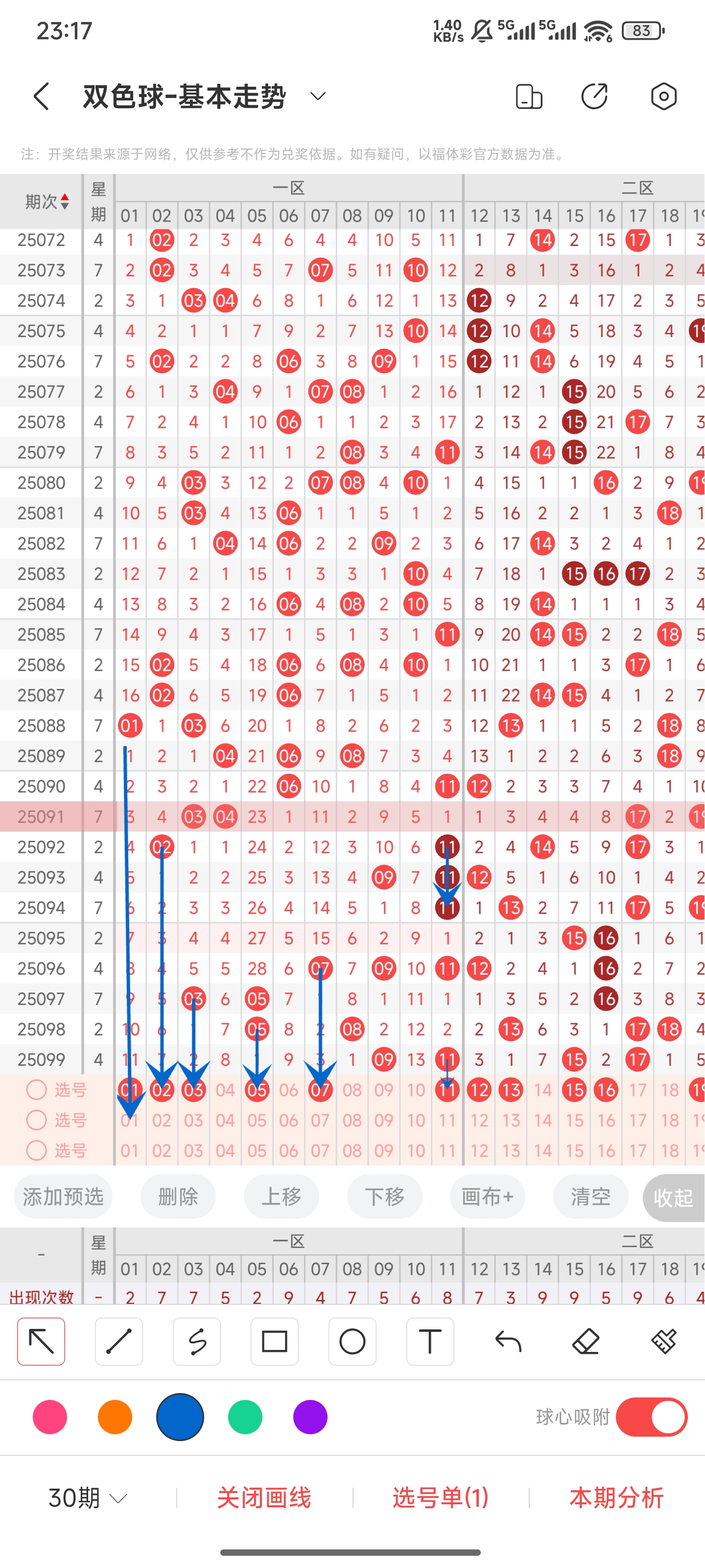 第25098期双色球文章中推荐中命中05,08,17等3个红球。