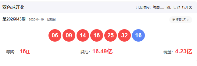 开奖号码:06 09 14 16 25 32-16