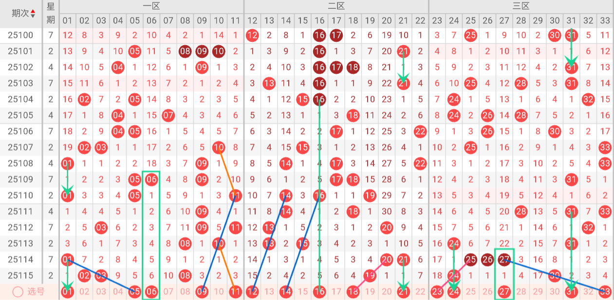 根据以上特点,我们对双色球第25116期进行如下分析: