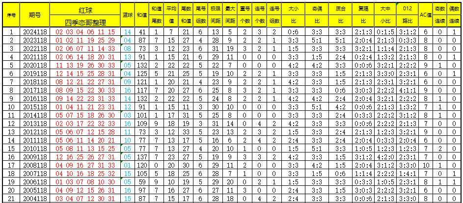 附:2003年起每年118期开奖号各类数据及10月14日同期开奖号各类数据,供大家参考!大佬和彩友们速速拿走~