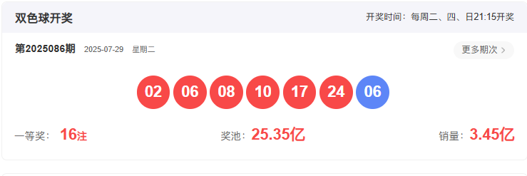 跨度为:22,和值:67, 大小比:2:4,奇偶比:1:5,质合比:2:4,蓝球开出偶合数小号码:06。