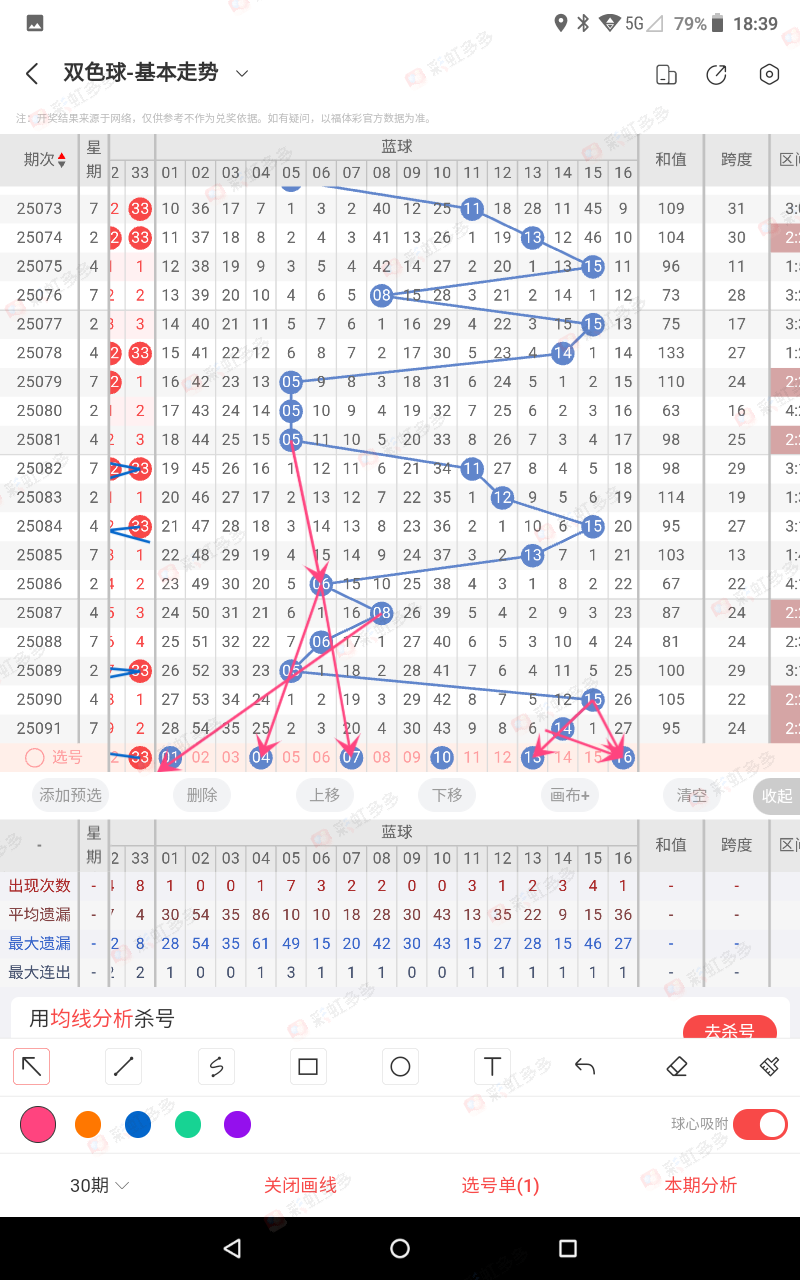 这个说明,二个红1+红2相加得出的和值,可以排除那个路数,也会错,甚至连错,抓有效规律,直到错为止,070,086,090期错这期的蓝 1路需考虑,本期防连错