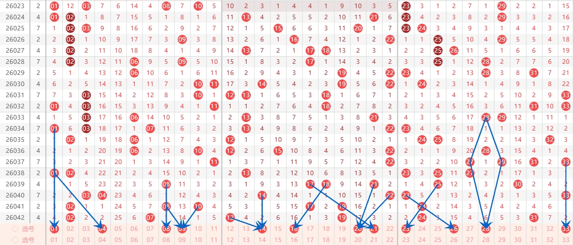 前区红球推荐:01、04、08、09、14、16、20、21、23、26、28、33。
