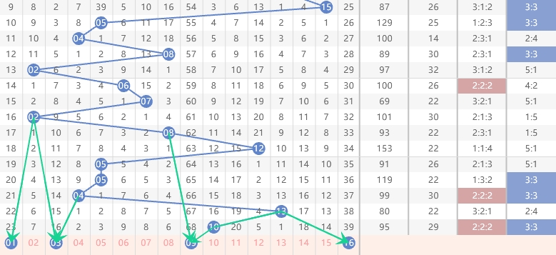 近期奇数强势占优,偶数持续补号,奇偶配比波动大,近几期5:1、1:5、3:3交替出现,本期优先看好3奇3偶组合,兼顾4奇2偶均衡搭配,合理把控奇偶号码数量,避免极端偏态。