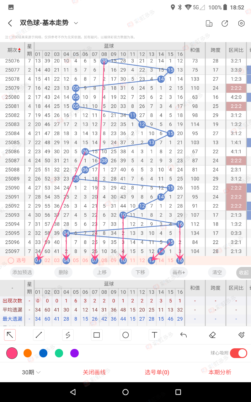 比如,097期蓝14号,096期蓝15号(属0路)那我们这期要杀的蓝号就是14+0=14大16减16,14为本期杀号,008期错,039期-040期,060,074-075期错,防三连错