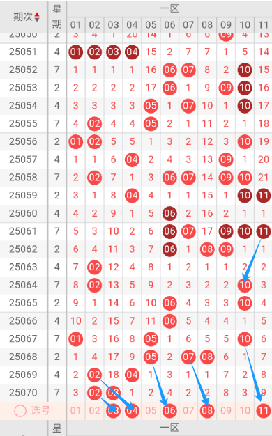 根据走势图可以看出当区段,062期开出了06.08.09三个号码球,063期开出了02一个号码球,064期开出了02.10二个号码球,065期开出了06.10二个号码球,066期开出06一个号码球,067期开出了01.05.10三个号码球,068期开出05.07.08三个号码球,069期开出02.04二个号码球,070期开出02.03二个号码球,按照如此规律本期当前区可能会开出2双。我们看下当前区上期开出02重叠号,那么本期当前区要定重叠号的情况下可关注03号码球。再看下当前区段上期开出03斜连号,当期选号得留意04斜连号。建议重点关注03.04.06.08