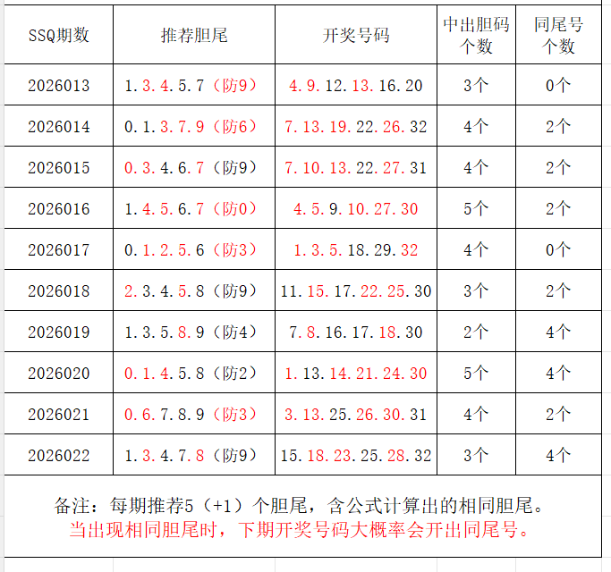 如图,每期推荐胆尾中出1-4个。上期推荐胆尾中出2尾3码!推荐胆尾是按照公式计算的顺序,不定位红球号码的顺序。本期推荐胆尾:7尾/1尾/4尾/5尾/3尾  。加推重点胆尾:***(会员专区可见)。推荐胆码号码:***(会员专区可见)。个人分析,仅供参考。