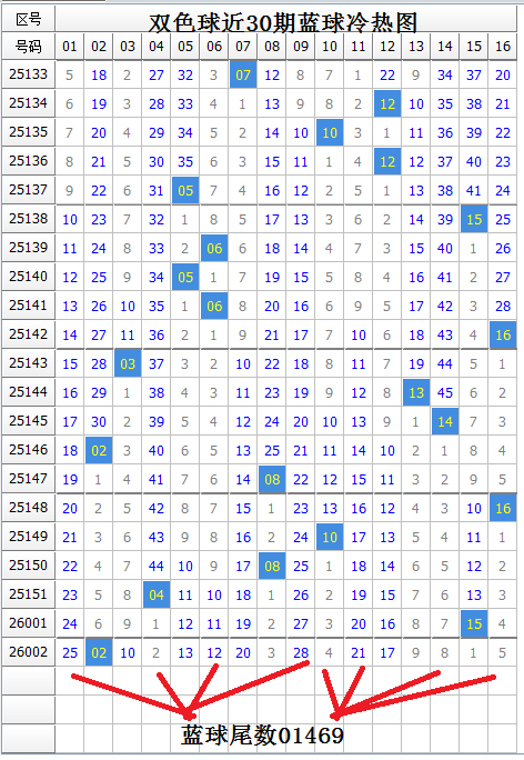 蓝球本期有热蓝8枚,冷蓝8枚,蓝球冷热码数量一样。上期开出冷蓝,由于近期蓝球冷热交替开出规律不明显,本期蓝球热码冷热难定。