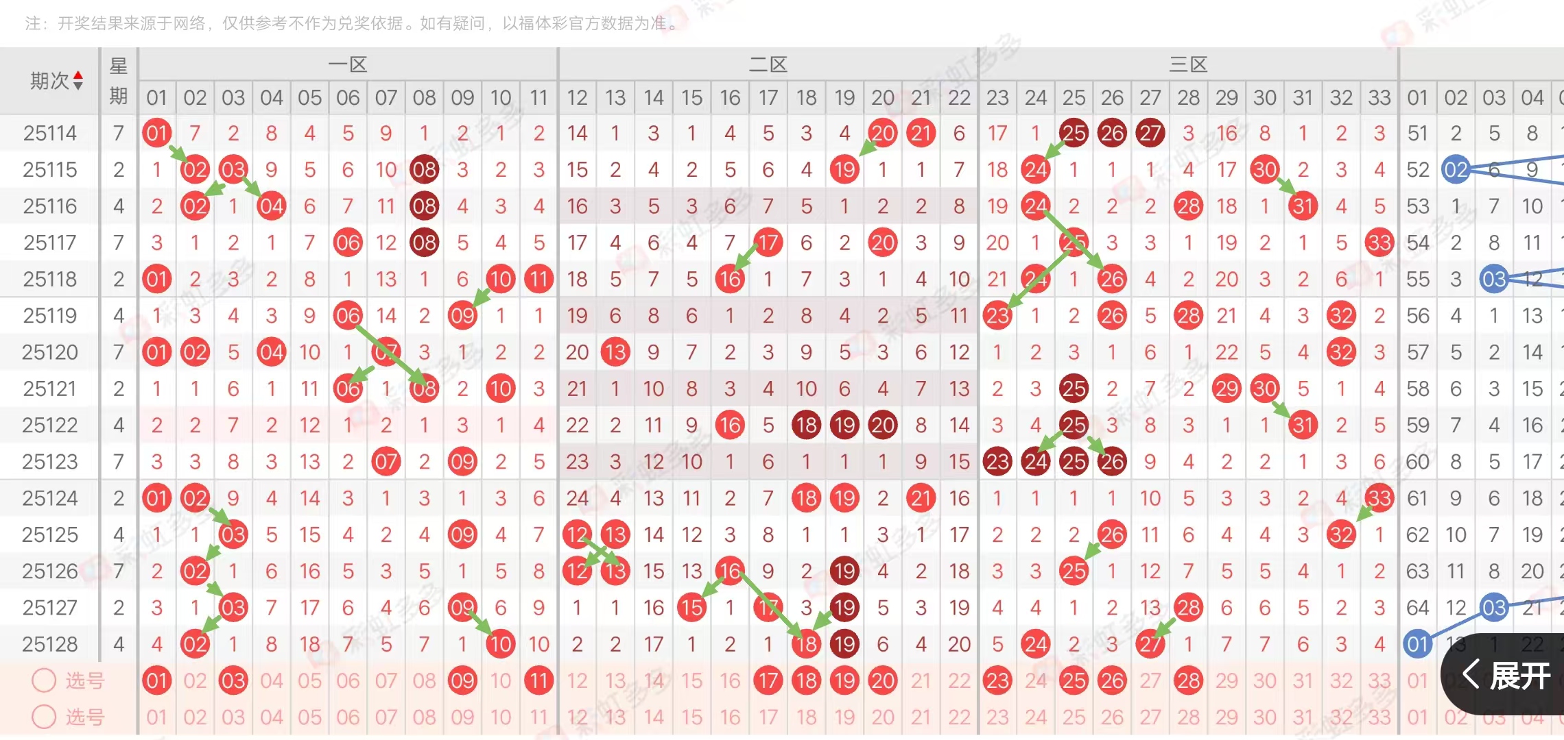 (三区:一区1-11,二区12-22,三区23-33)上期三区比2:2:2