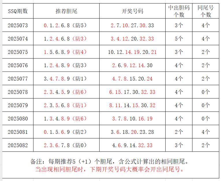 如图,每期推荐胆尾中出1-4个。上期推荐胆尾中出3尾3码!推荐胆尾是按照公式计算的顺序,不定位红球号码的顺序。本期推荐胆尾:0尾/3尾/7尾/5尾/6尾 。加推重点胆尾:***(会员专区可见)。推荐胆码号码:***(会员专区可见)。个人分析,仅供参考。