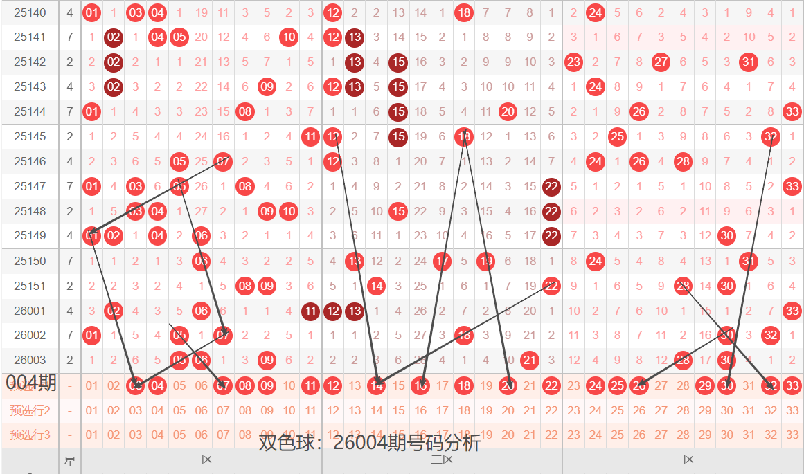 先介绍下上期开奖号码的基本情况,红球奇偶比:3:3,区间比:3:1:2,012路比:4:1:1,通过上期号码简单介绍,分享下26004期号码球个人认为的出号可能,供大家参考!