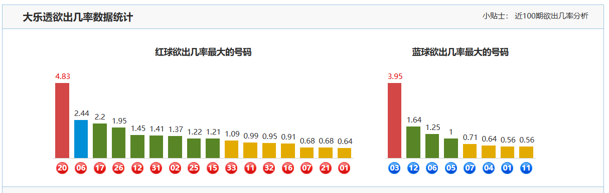 5.红球大小分析:上期红球大小比为1:5,本期预计大号红球稍占多数,关注大小比为4:2。