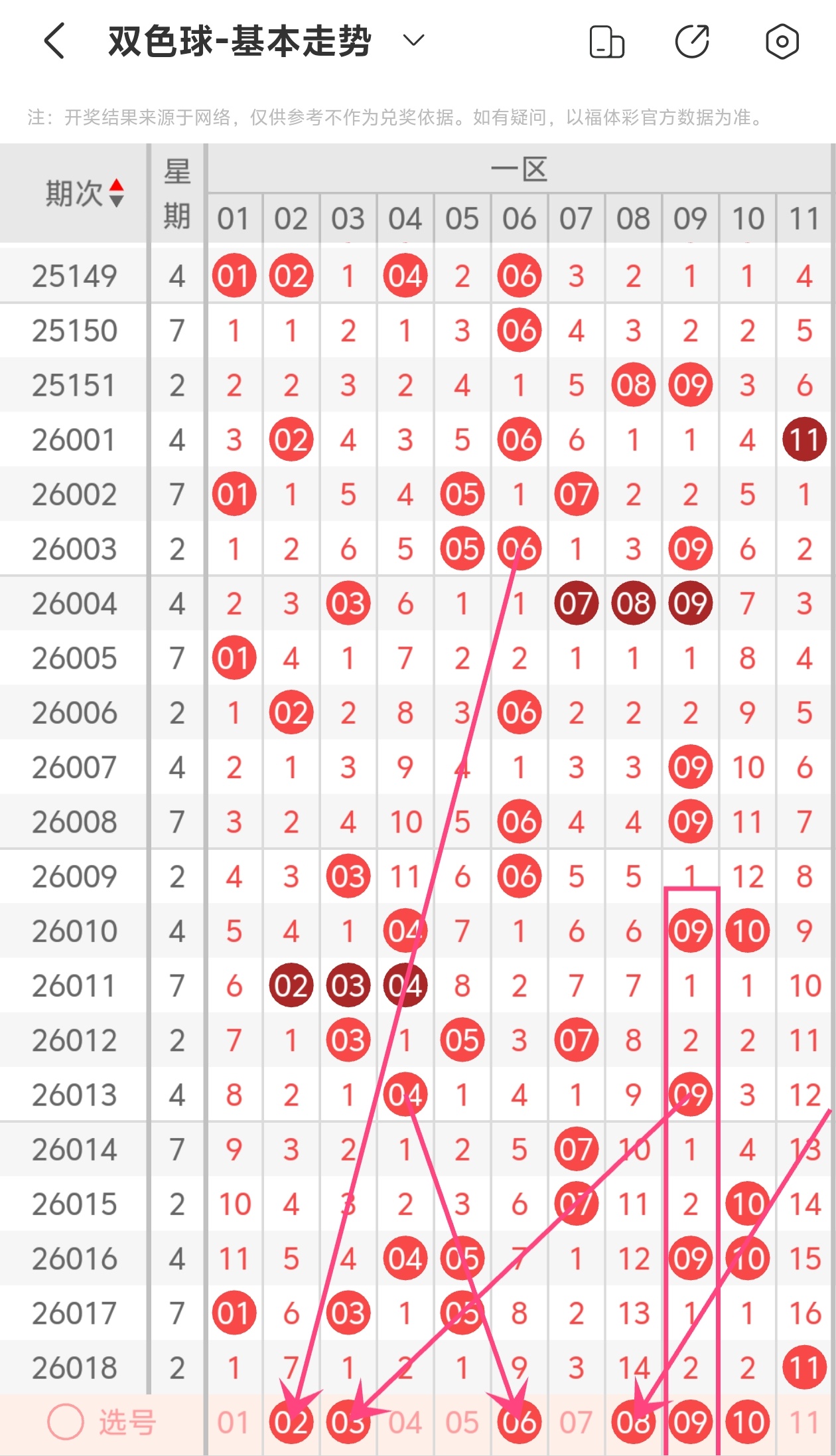 下面是我对2026019期福彩双色球的分析和预判,希望通过我的分析能让大家今晚大红!福彩双色球上期开奖号码如下图: