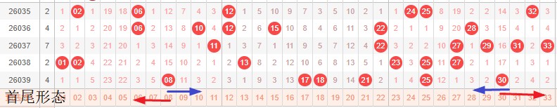 如图所示:首尾制约平衡组范围依次为:推缩推,推推? 本期形态范围优先选择红色拉伸首尾。由于上期号码已经进入新走势第1期,目前处在新走势第2期,利用常规起号形成拉伸还是拉压缩,均定就是走势正反方向。