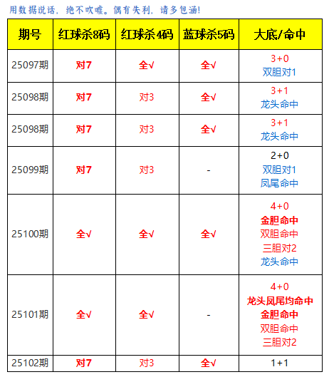 上期红球杀8码对7,免费文章杀4码全对大底命中3+0,本期再接再厉!