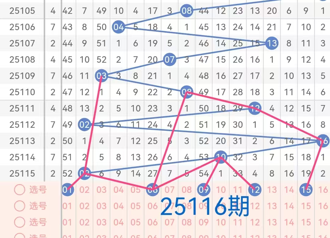 后区号码范围为01-16,根据历史数据分析,后区号码的出现具有一定的规律性。以下是对后区区间的具体分析: