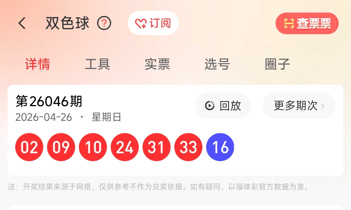首先让我们回顾一下上期双色球26046期的开奖号码为02、09、10、24、31、33,蓝球16。和值109,跨度31,区间比为3:0:3,奇偶比为3:3。