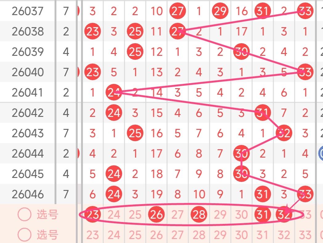 26043期号码分析推荐命中6+1!