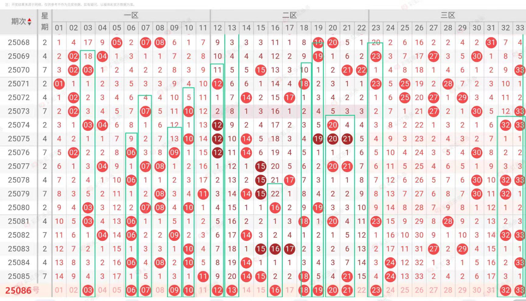 双色球第25086期 定向思路分析参考