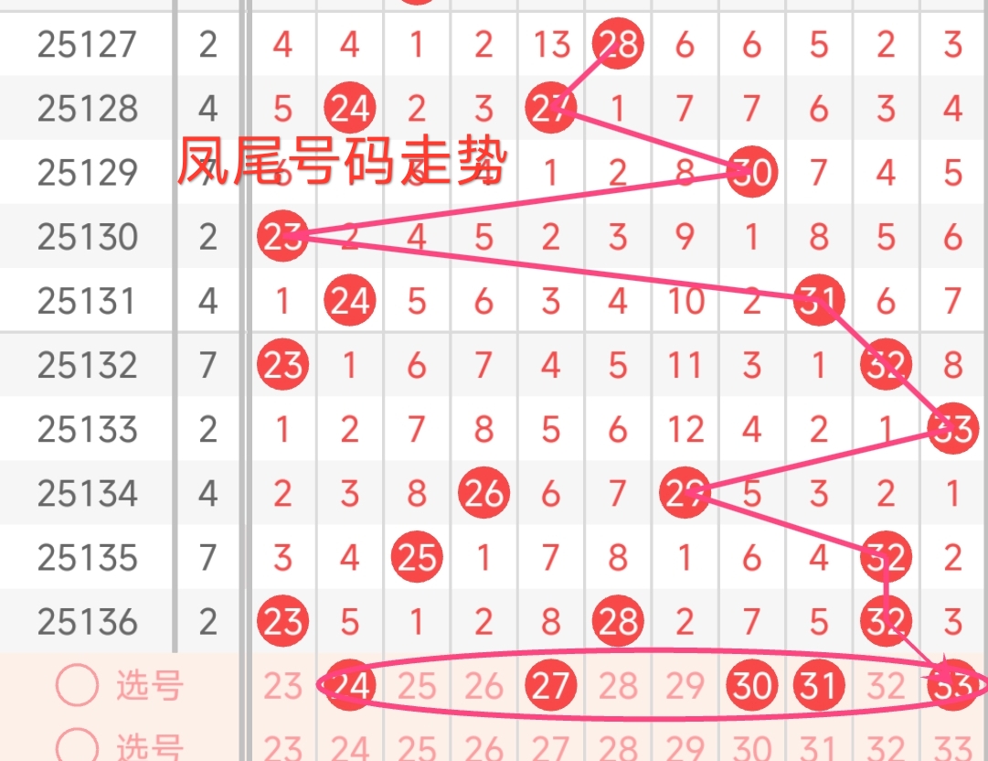 红球三区推荐(23~33): 上期开出3枚号码,号码为23、28、32,本期红三区建议出号1-2枚,本期红三区建议出关注号24、27、30、31、33。