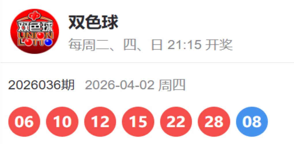 双色球第26034期开奖号