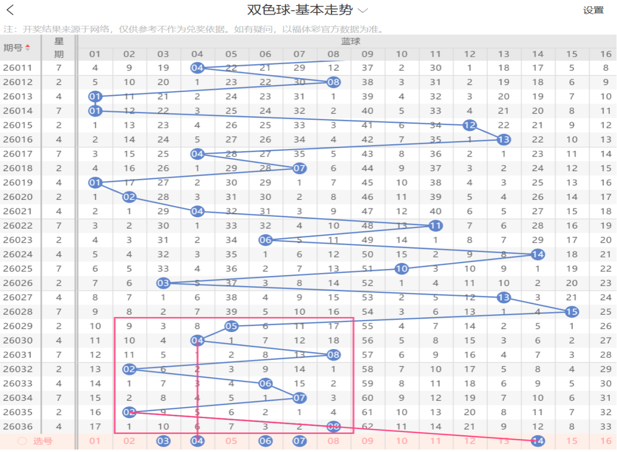 走近期走势看,蓝球08 二区间号(07-12)开出。小数继续下落,连续开出7期,本期大数是否有望回补?小号区走热,建议关注偶数蓝球(14)的大号回补。防继续小数开出02,04,06,07.
