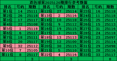 2025120期三区开出比例:3:3:0