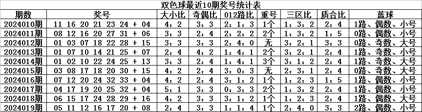 上期奇偶比为3:3,奇偶红球走势相当,近10期奇偶比为27:33,偶数开出比例较高,其中偶数红球热出4期,平衡5期,走冷1期,本期预计偶数继续热出,参考奇偶比为2:4。