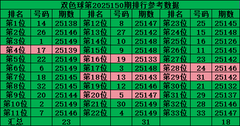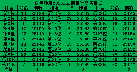 综上所述,双色球第2025151期号码推荐: