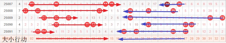如图所示:体现的是3个局部走势的发展周期,圆圈为密集处的填空,本期定性为新局部走势4期,主力填空第2期,架构填空第1期。蛋跨定性为10-20,真实空间布局在21-27。本期蛋跨预估3枚左右,即要么大小均衡,要么小号暴走。主力出号在4-17空间,或者4-17和27--33空间恰好体现压缩首尾3-27选号和右推首尾。