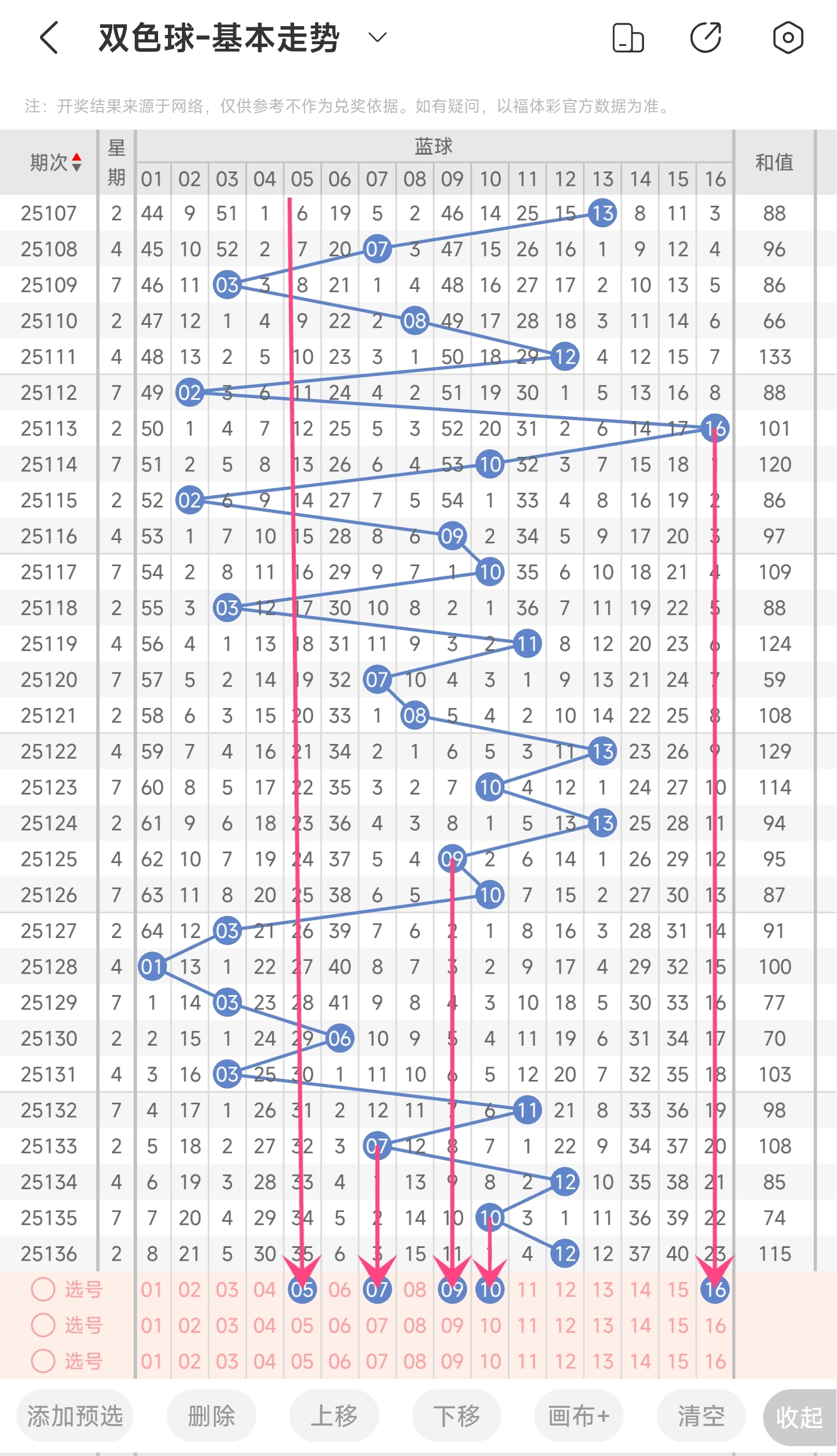 蓝球推荐:5,7,9,10,16。