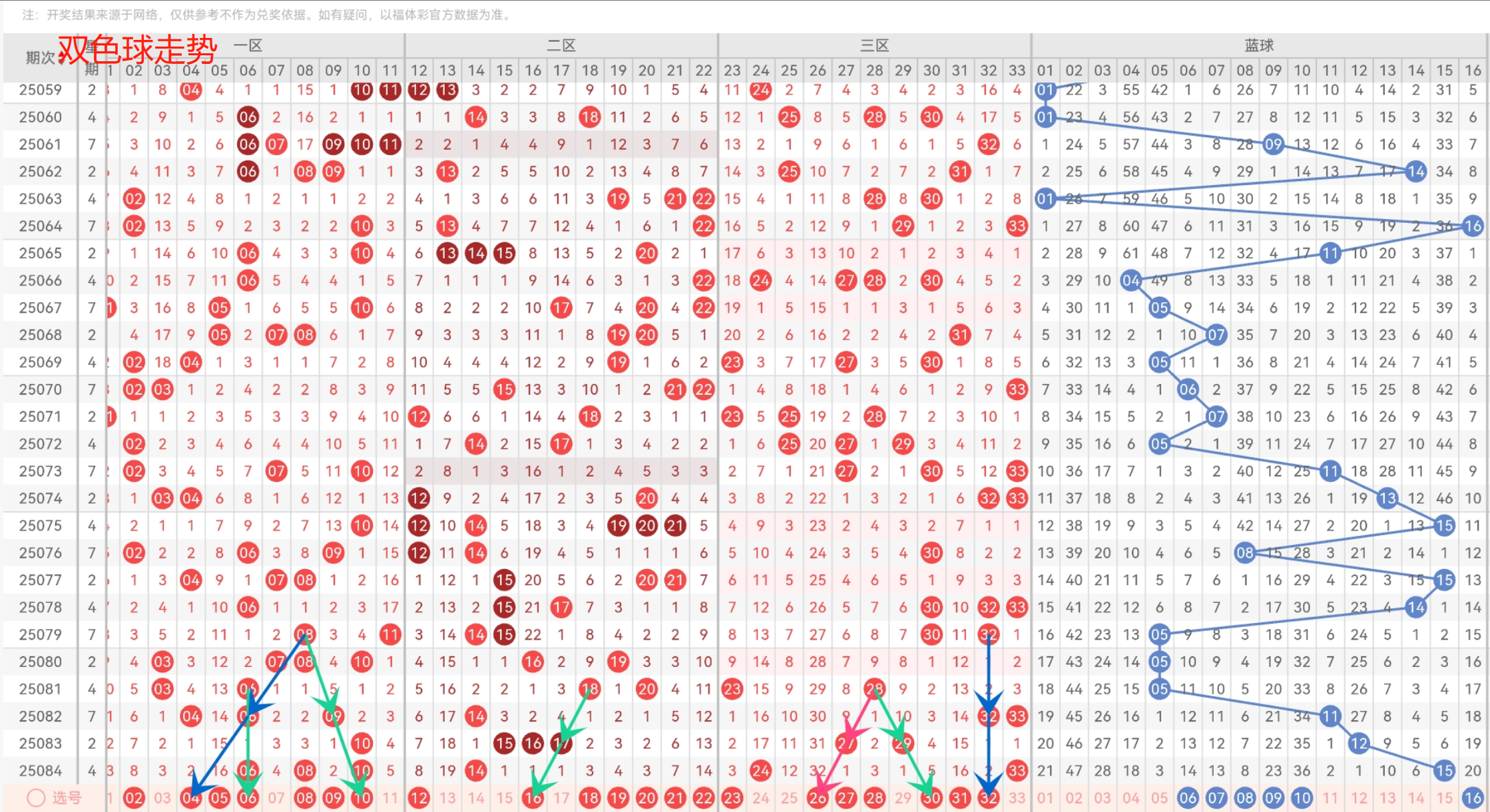 红球三区,上期表现比较中温,本期也考虑中温,考虑1-2码;其中走势比较好看的有26-30-32,推荐关注1-2码;上期出了一个偶数24,本期考虑偶数回暖,可以多看偶数;