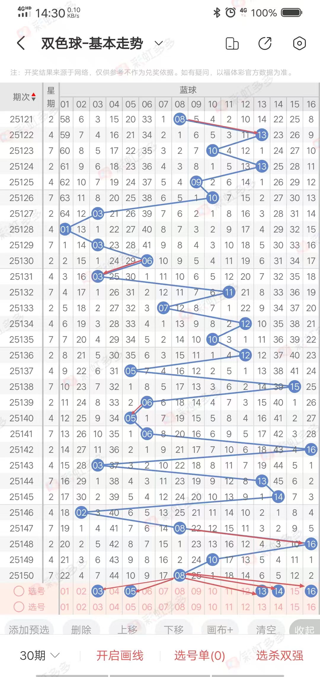 热号多出1.2.3.4期,冷号多出1.2.3期,本期重点关注热号(遗漏十以下),重点选234区,综合:蓝3.13.5.16.14,蓝区杀号:2.4.8.10(目前连对0期)