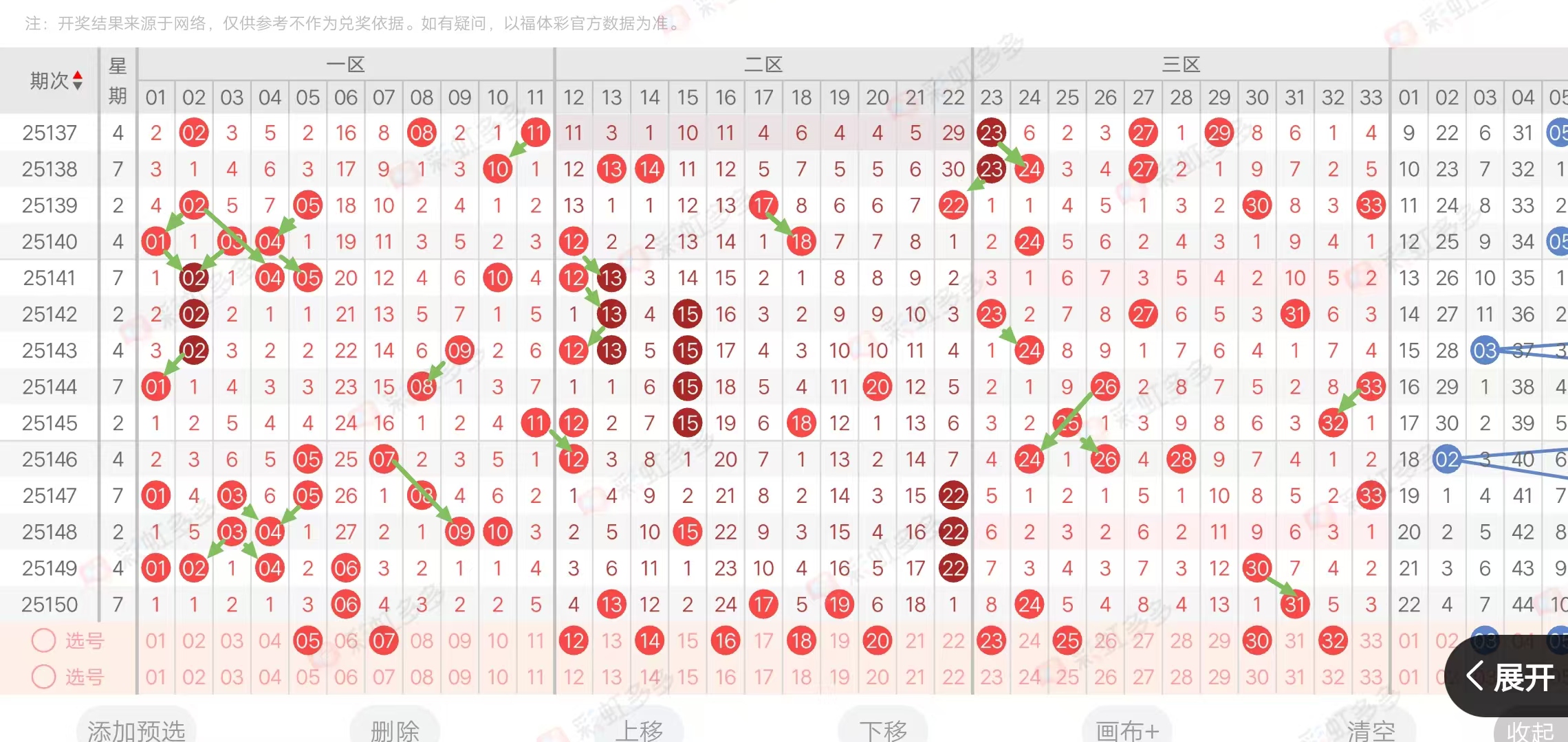 (三区:一区1-11,二区12-22,三区23-33)上期三区比1:3:2