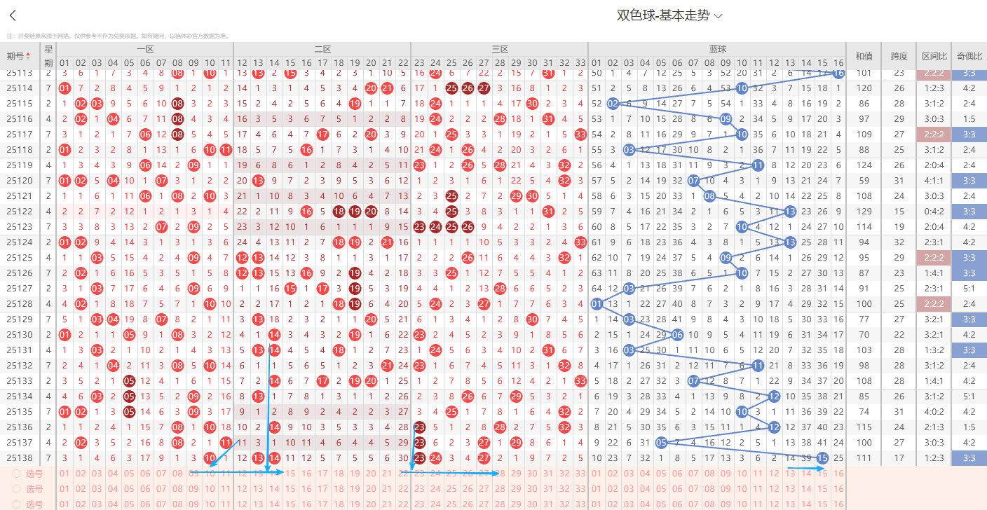 一、红球特征分析:(通过整体走势不难看出每期开奖号都具备以下明显的特征点)