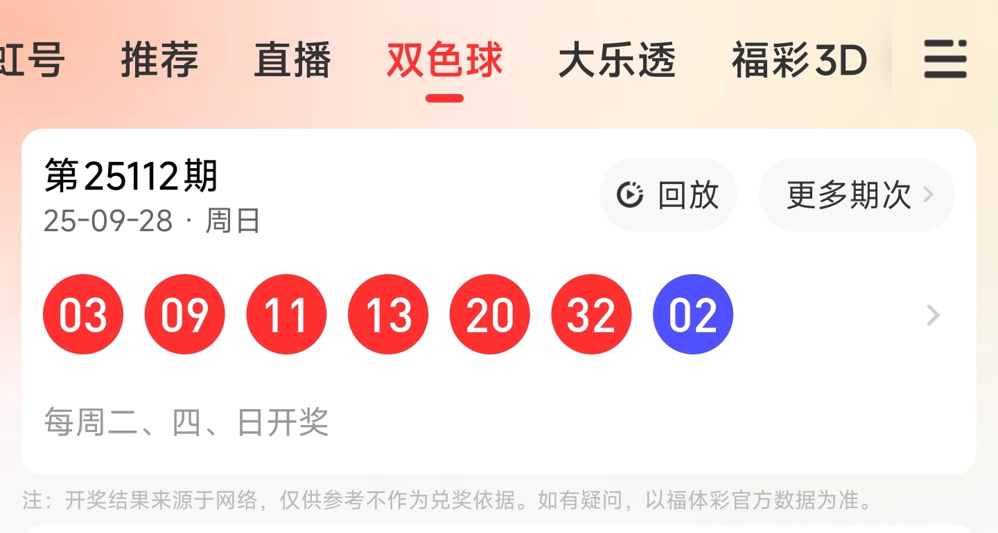 第25112期双色球文章中推荐中命中03,11,13,20,32等5个红球。