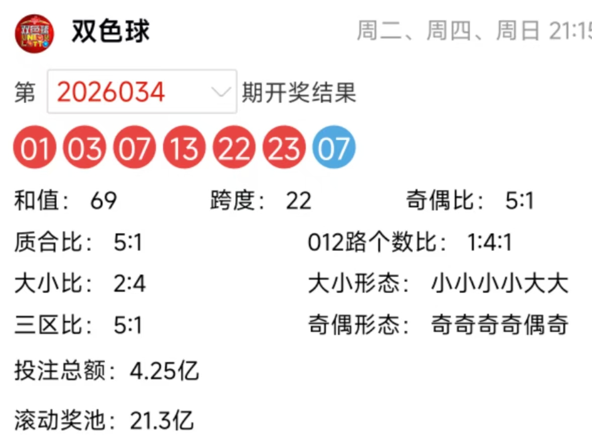 双色球上期(第2026034期)开奖详情