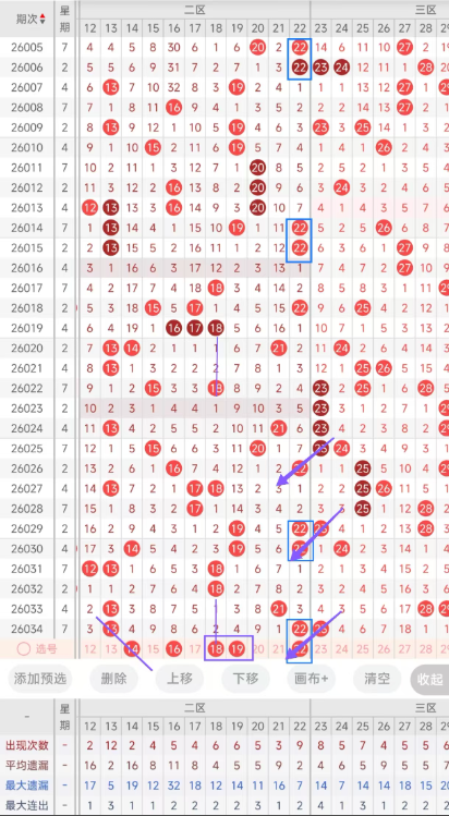 因此,双色球红球第2026035期红球二区考虑开出两个号或断区,精选5码参考:14、16、18、19、22