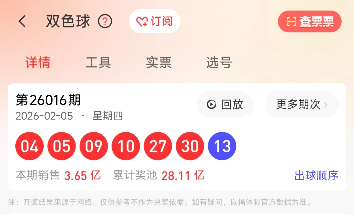 首先让我们回顾一下上期双色球26016期的开奖号码为 04、05、09、10、27、30,蓝球13。和值85,跨度26,区间比为4:0:2,奇偶比为3:3。