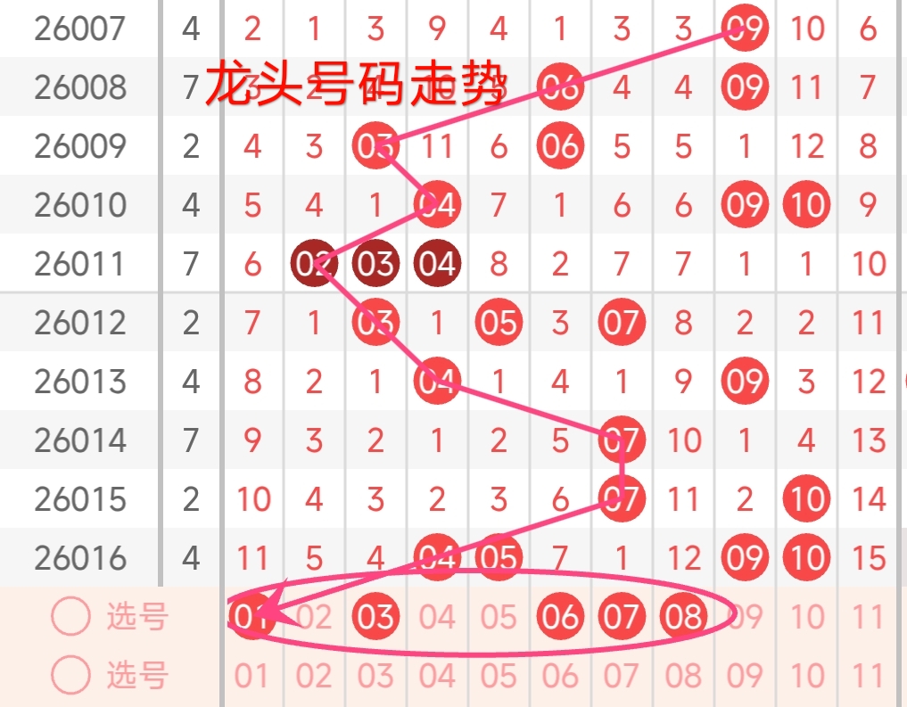 龙头号码走势分析: