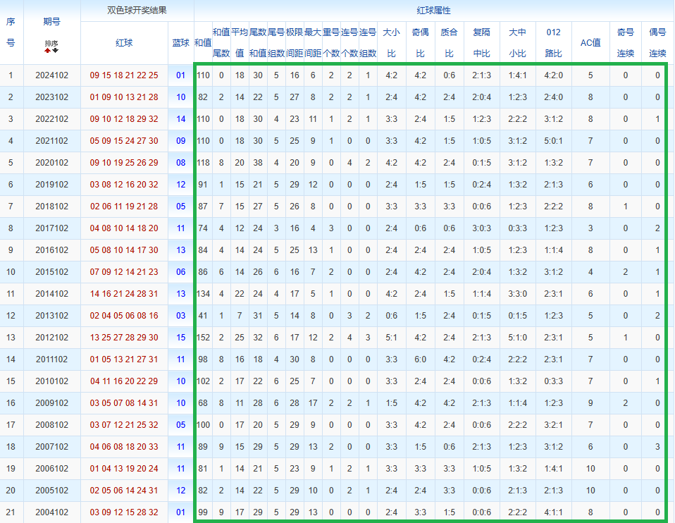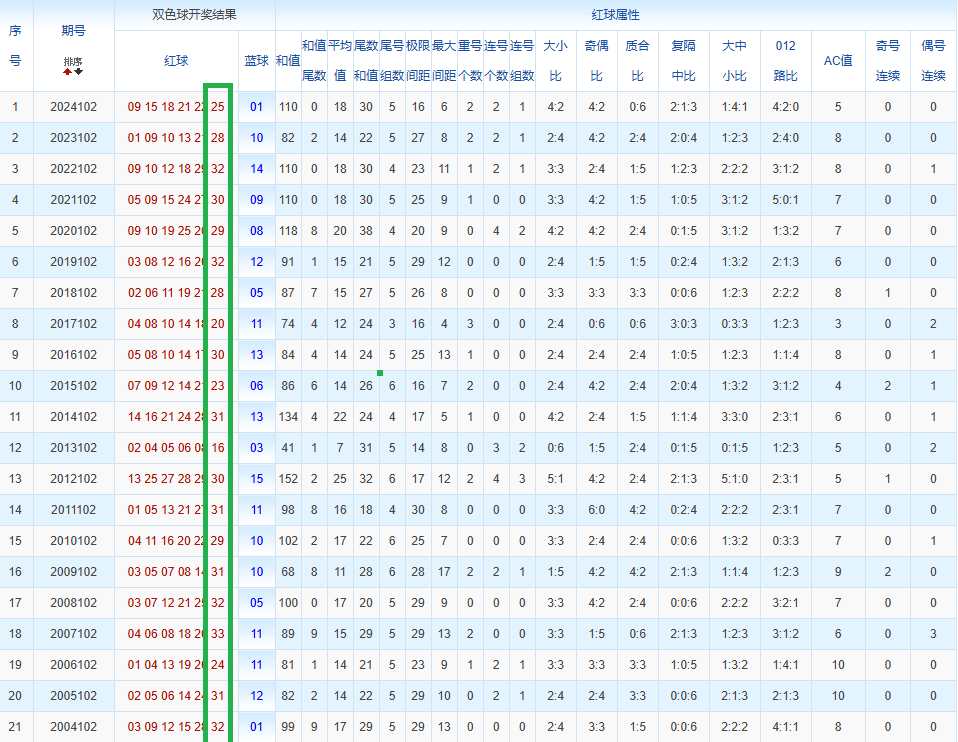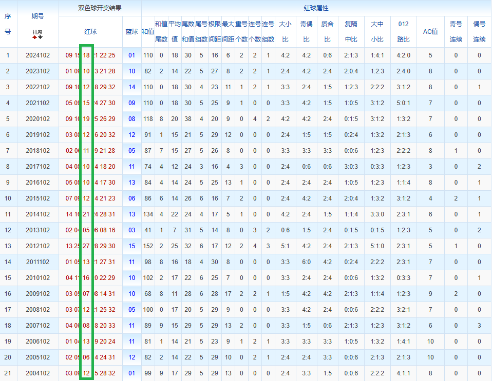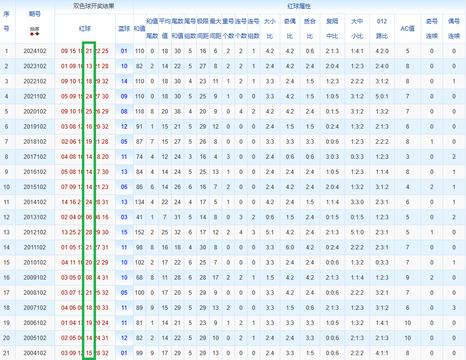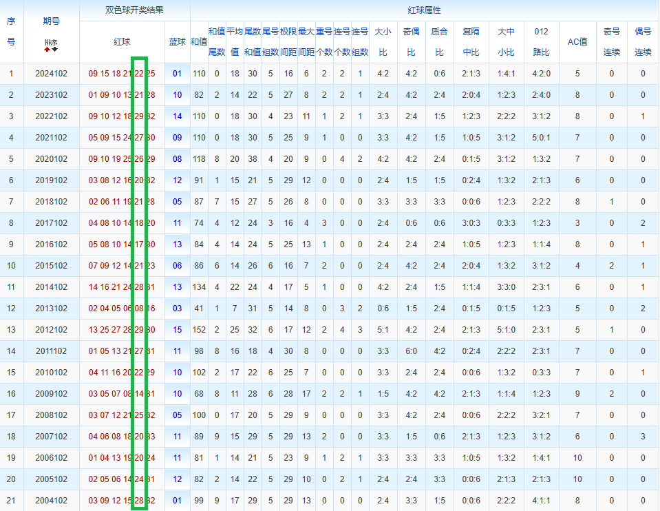 通过观察,我发现双色球往年同期的开奖数据与本期号码之间存在显著关联。具体来说,在红球中,从第一位至第六位,通常会有约4个位置上的数字与往年同期相同位置的号码一致;而蓝球号码中,也有多期开奖结果直接包含了往年同期的数字。因此,我们可以借助往年同期各位置上的号码,作为分析本期开奖情况的重要依据。在此基础上,还可结合往年同期的其他相关条件,进行综合性的号码组合推荐。