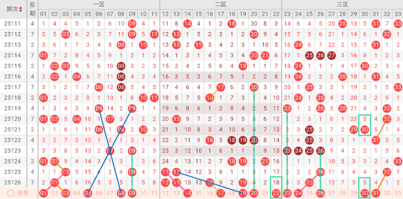 根据以上特点,我们对双色球第25127期进行如下分析: