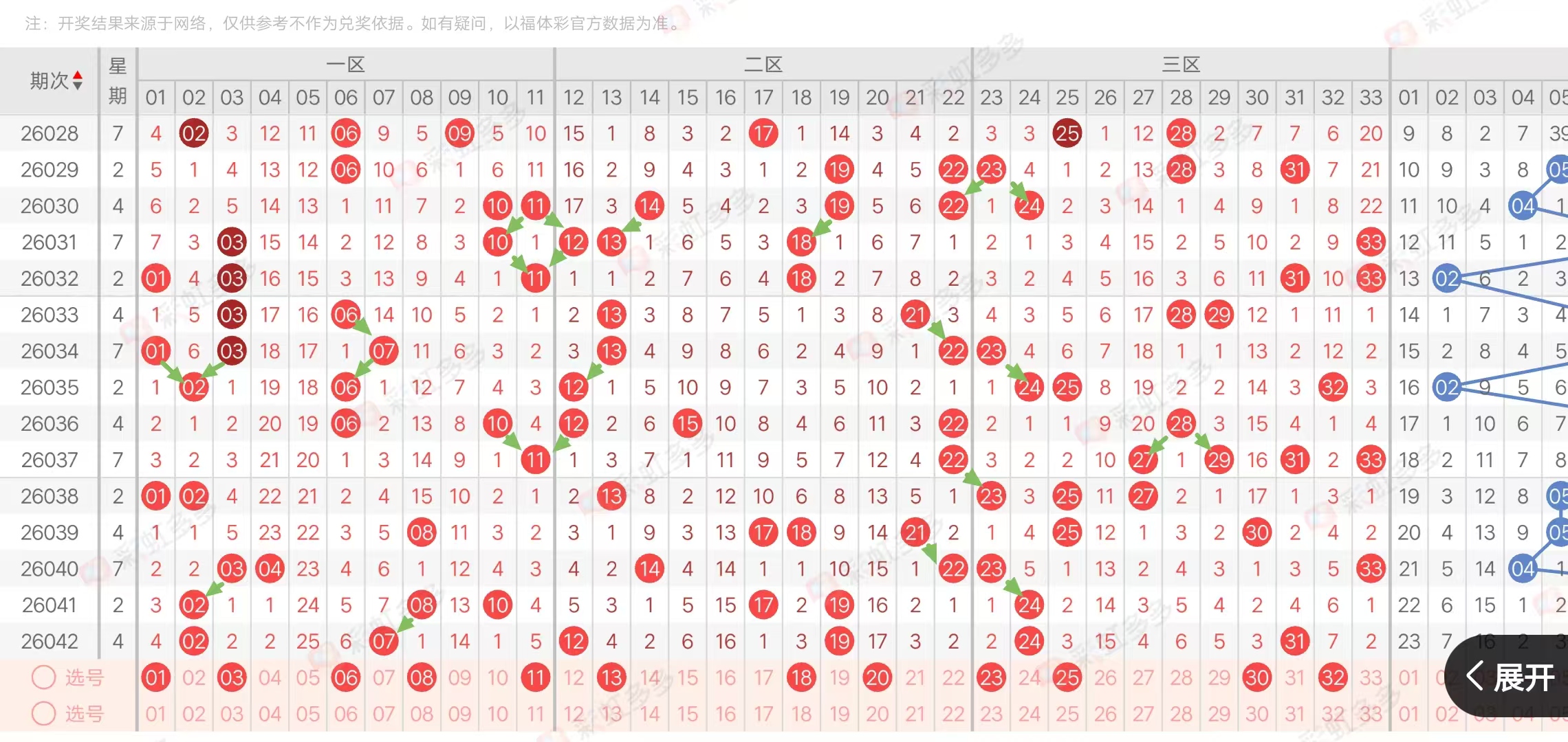 (三区:一区1-11,二区12-22,三区23-33)上期三区比2:2:2