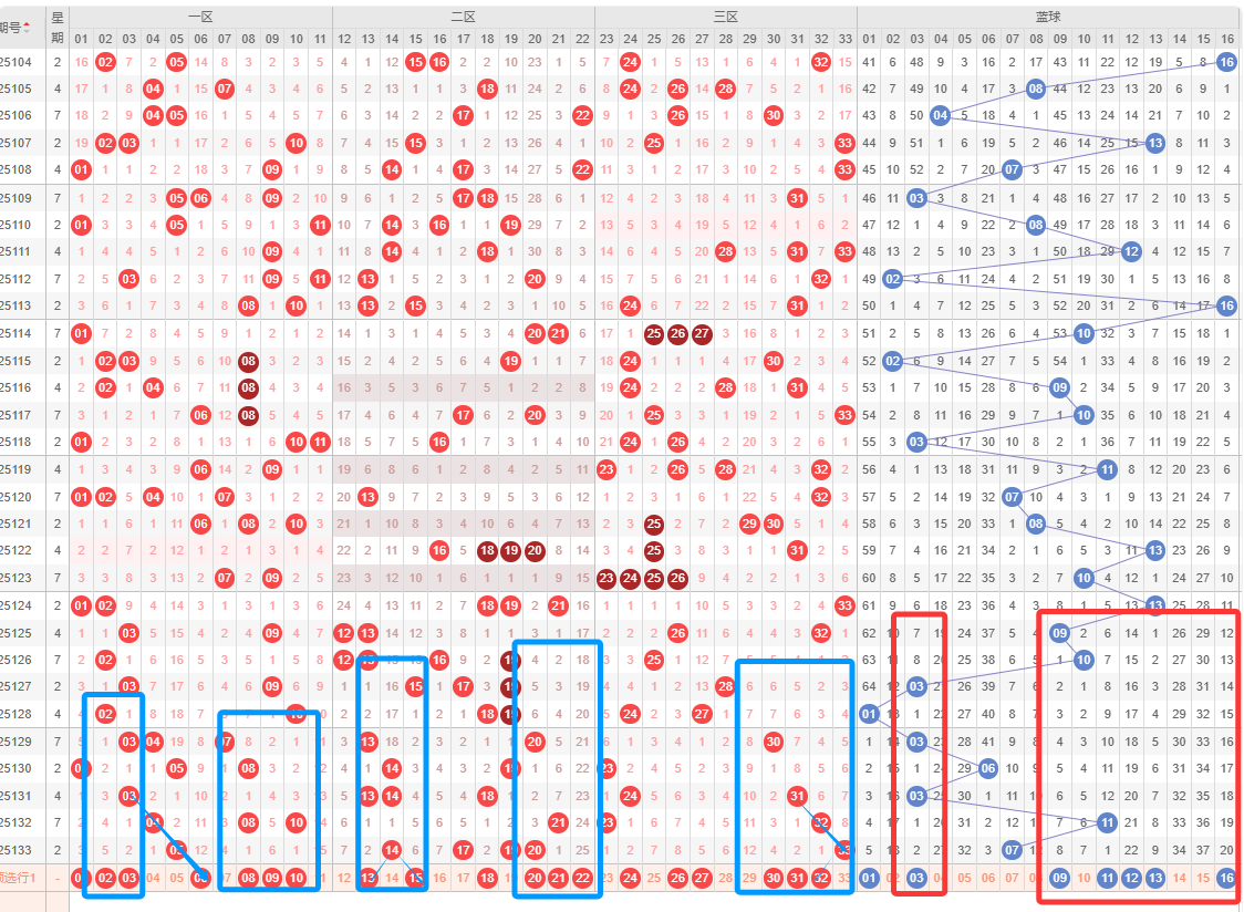 红球三区,上期开出1码,温度稍微降低,三区有走冷的趋势,本期看好0-3从凤尾走势来看,上期开了33,开了右路的号码,本期走势看好往左走,本期持续关注右路,其次是中路,最后是左路;从奇偶数看,上期开了奇数,本期看好偶数回补,防奇数;从012路来看,上期开了0路号码,本期继续看好0路,次之是12路号码;